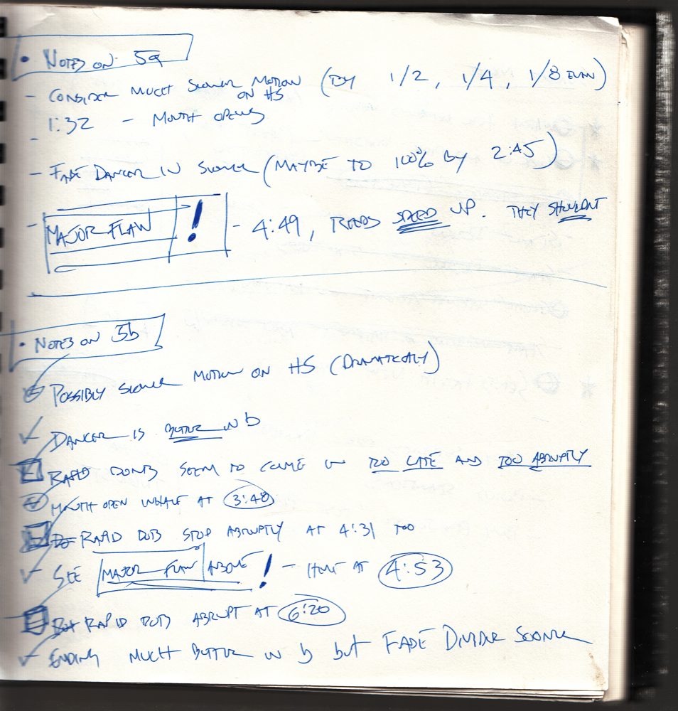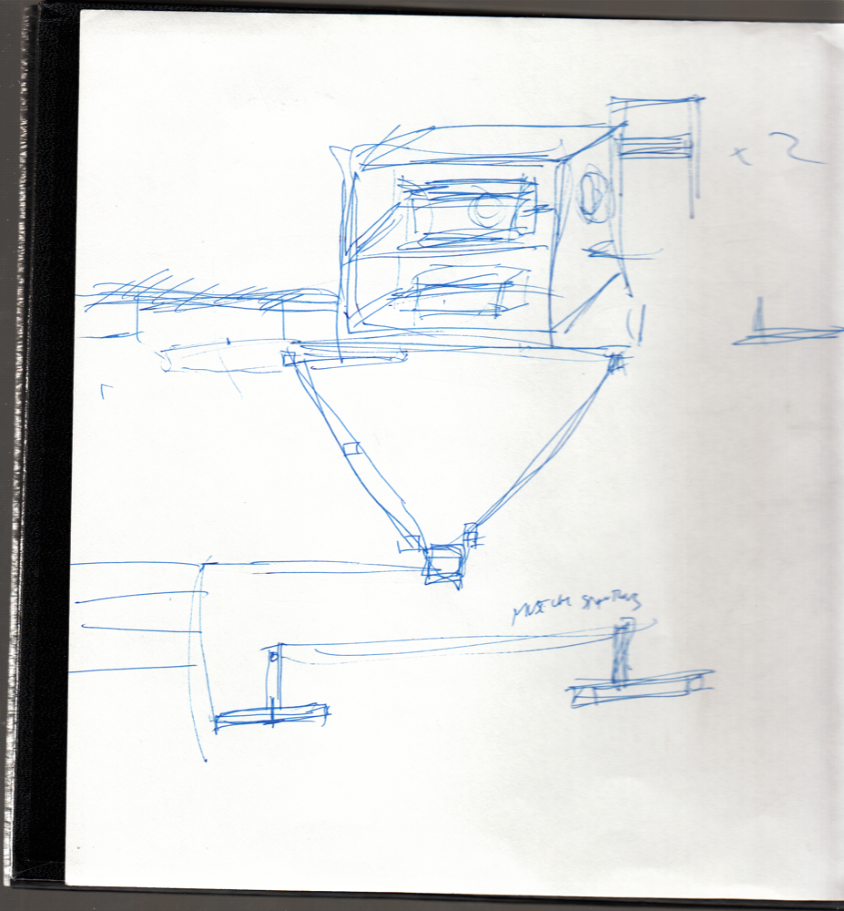 This sketch showed an option I considered whereby the full 16×9 projection for the external (or “fantasy”) portion of the project extended from one wall to the edge of a door. The part of the projection which was my head would actually be projected onto cloth hanging from the ceiling, slit down the center allowing people to walk “into” my head to go to the other room and see the other part. This represents the true ideal of Outside/In but would have required a ceiling mount for this projection channel which was not possible.